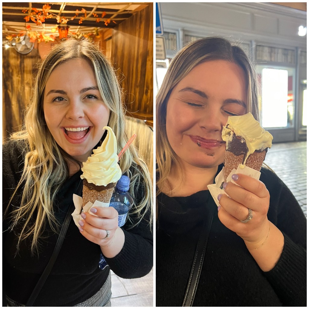 Okay, so the truth is that I didn’t love the food in Prague. I really think Prague would be one of my favorite cities ever…but since I am such a foodie, this was a disappointment for me. The food is very heavy, featuring lots of meat and potatoes. I did try a chimney cake, which is available on basically every corner. My recommendation would be to grab some extra napkins for this one!