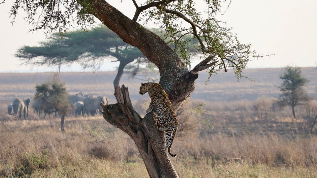 another leopard on the move! Joshua’s expertise and connections meant we were always in the right place at the right time—like when we patiently waited to see a black rhino and her baby in the Ngorongoro Crater, an experience that still leaves us in awe.