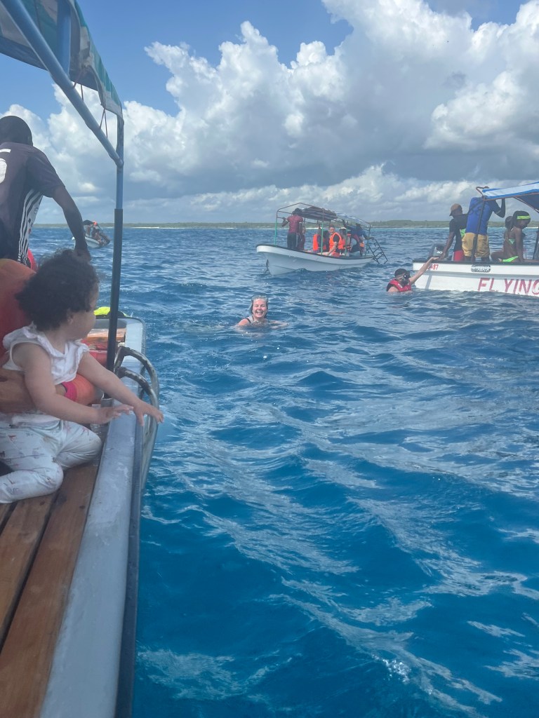 We went on one excursion to go swimming with the dolphins and snorkeling. This was QUITE the experience, which Ben refers to as our boat ride from hell. This is where Ben had his “I don’t think we’re going to make it” moment. It started off really crazy because 9 of us boarded a very small boat with a little canopy.