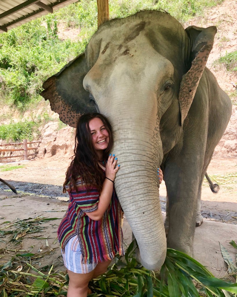 A picture of Amber & I at my bridal shower. While in my senior year of college, Amber joined Komatsu and always shared how great of an organization it was. After graduating college, I went to Thailand for a couple of weeks because I wanted to travel before beginning to work full-time. Thailand is still the best place I have ever been. Check out the picture below of me at an elephant sanctuary.